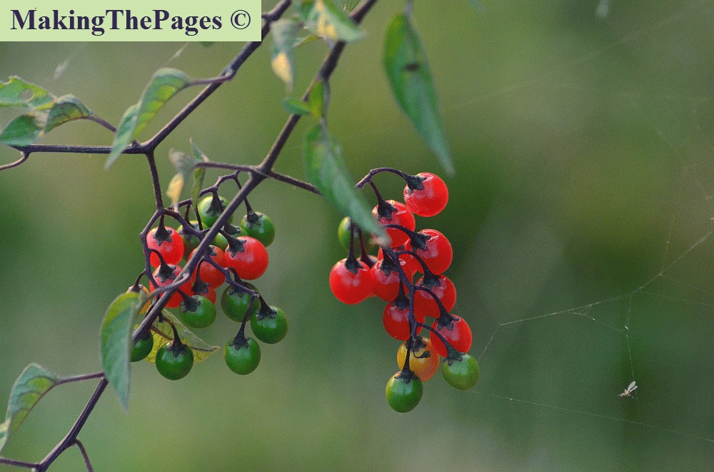 speciaal | Giftig: sterk giftig kan enstige ziekten of dood veroorzaken. Rode, giftige bessen. nachtschadefamilie, zeer herkenbare plant, typische nachtschade blad en bloem, maar dan paars, enige wilde nachtschade in Nederland met paarse bloemen en rode bessen. Andere wilde nachtschades hebben alle witte bloemen. Klimplant, woekert overal doorheen. U moet er dus op verdacht zijn dat u in een andere plant, boom, struik of in, langs een hek de specifieke blaadjes ziet. | ||