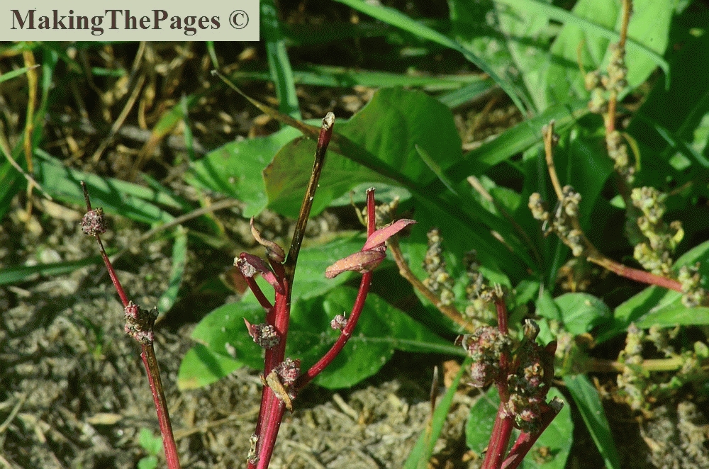 | verwissel | Ridderzuring, Krulzuring en Kluwenzuring. Op het eerste gezicht lijken alle Zuringen op elkaar. Kijk goed naar de steel, bladvorm en de vruchtjes (loep). Ridderzuring, de pluim en de standplaats komen overeen, de bladen van Ridderzuring, zijn onderaan groot met stompe uiteinden, bovenaan met ellipsvormige bladeren. Krulzuring heeft onderin de plant lancetvormige, gekroesde bladeren, bovenaan smalle, lancetvormige bladeren die tot halverwege de slanke pluim ingeplant zijn. Bermzuring is een kruising tussen Ridderzuring en Krulzuring, met alle bladeren gekroesd en onderin met een hartvormige voet. Kluwenzuring, heeft de bloemen in de pluim in etages net als Krulzuring, beide bloemdek met 3 knobbels, loep nodig voor het onderscheid, de bladeren zijn tot bovenin de pluim ingeplant, in ieder geval tot over de helft. | ||